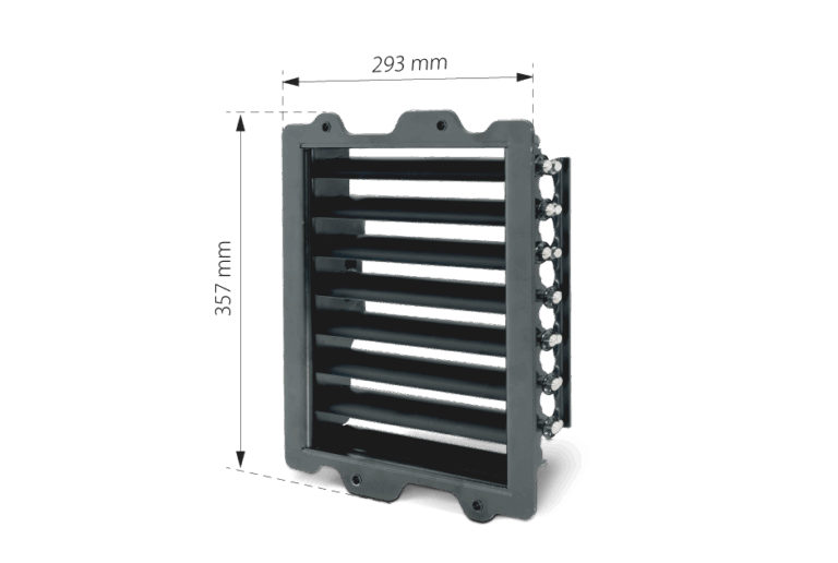 • יעילות אווירודינמית: השסתום תוכנן לזרימת אוויר ליניארית מיטבית, תוך ניצול מלא של שטח החתך המלבני. הוא מאפשר ספיקות גבוהות של 1,850 מק"ש @ 200 פסקל, מפל לחץ נמוך יחסית.